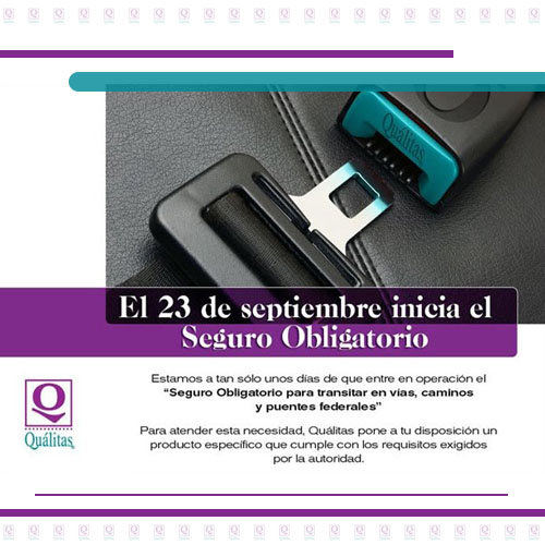Como recordaran y de acuerdo a lo expuesto en nuestro comunicado en el mes de Mayo, el próximo 23 de septiembre del año en curso, entrará en operación el “Seguro Obligatorio para transitar en vías, caminos y puentes federales” dispuesto en el artículo 63 Bis de la Ley de Caminos, Puentes y Autotransporte Federal.